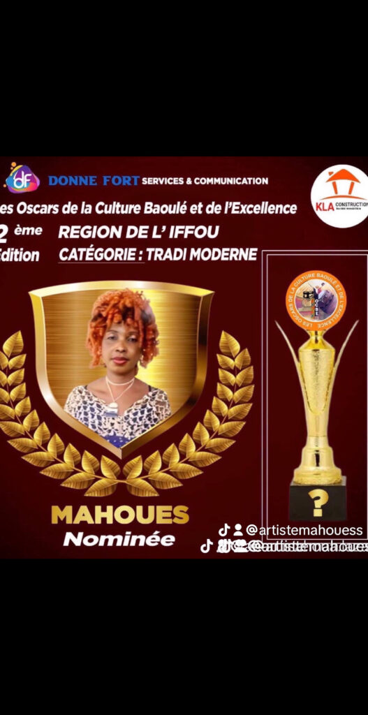 Bonsoir, je suis Artiste chanteuse.Je nomme Mahouess. Je viens de Prikro après Daoukro. La musique c’est ma passion et j’ai fait passer le message de ce que j’ai  vécu et mes émotions.